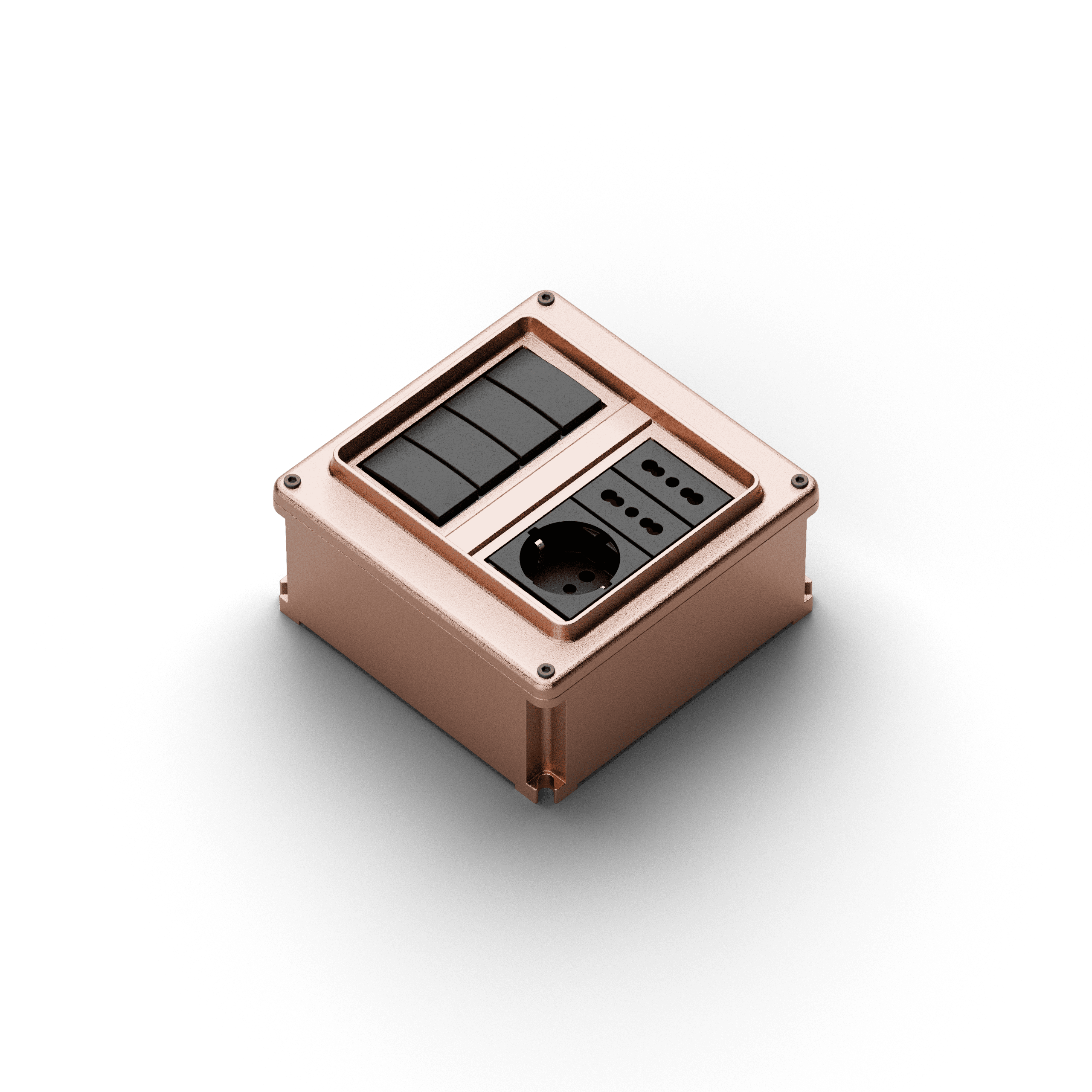 Wallbox è la scatola portafrutti da parete dallo stile industrial ispirata agli impianti elettrici navali: il suo aspetto robusto e compatto la rende ideale per ambienti interni dallo stile sia moderno che storico. L’apertura a 8 moduli permette innumerevoli combinazioni di interruttori e moduli, per soddisfare ogni esigenza tecnica ed estetica e per gestire al meglio il tuo impianto elettrico a vista.