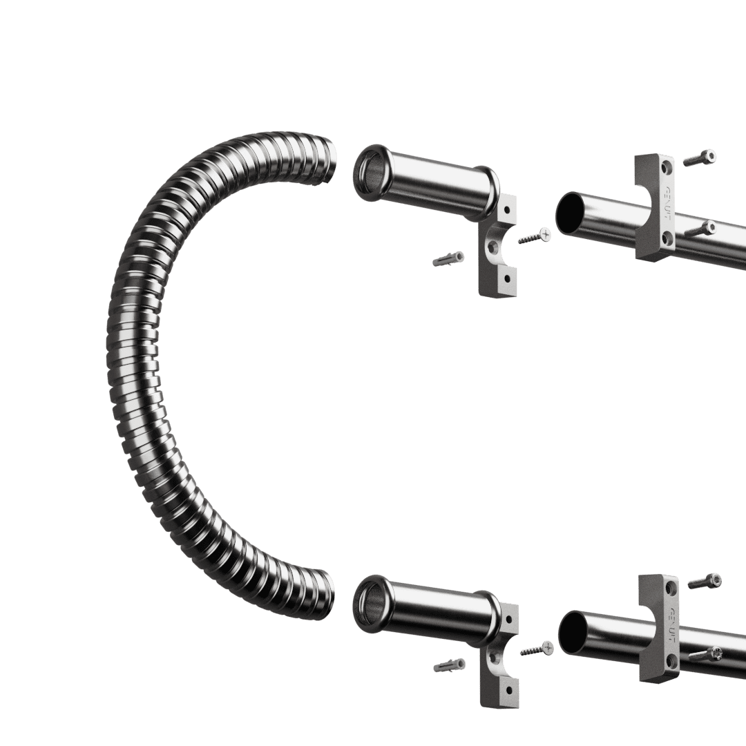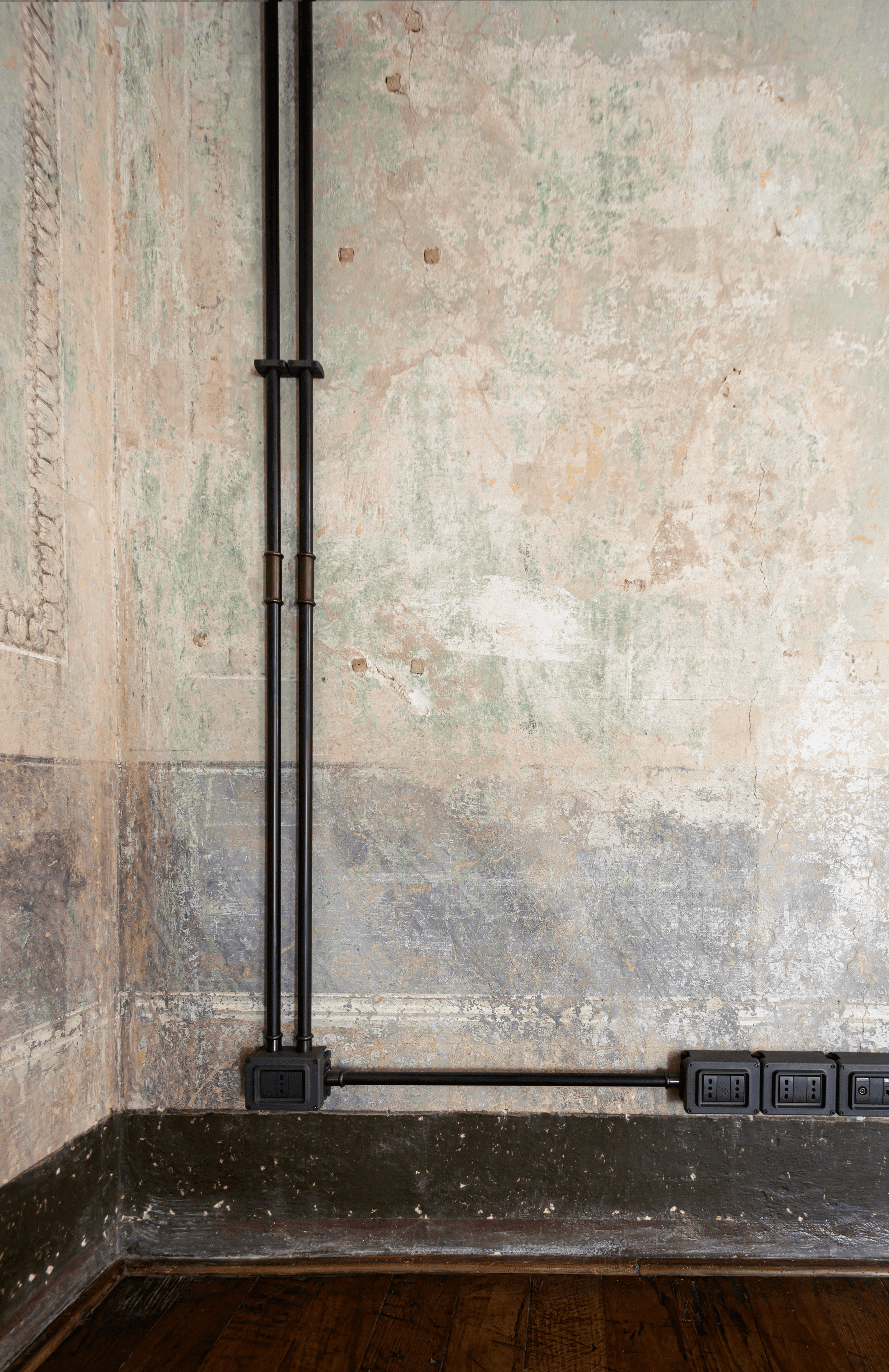 Per collegare cassette interruttori e lampade, è stata progettata una gamma di componenti tecnici a corredo dal marcato stile industrial.